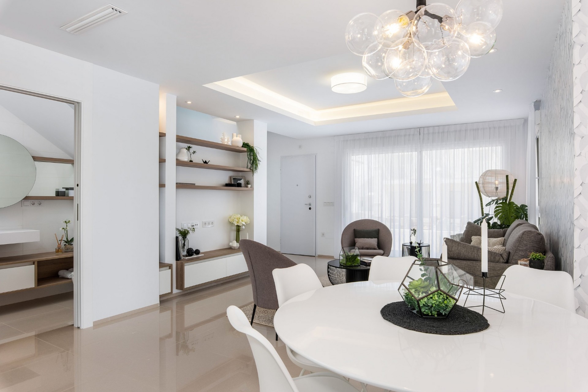 The apartments have 2 bedrooms and 2 bathrooms in the Adhara model and 3 bedrooms and 2 bathrooms in the Jazmín model, as well as an open plan kitchen and living-dining room. You can choose the option of ground floor with beautiful private garden or top floor with spacious solarium.